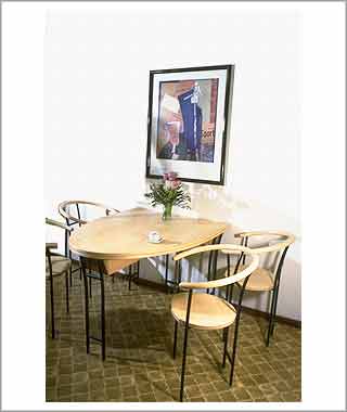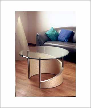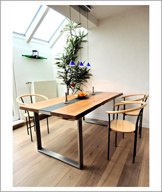 Gestell: Vogelaugenahorn (Nachbildung/ Echtholz), Edelstahl