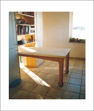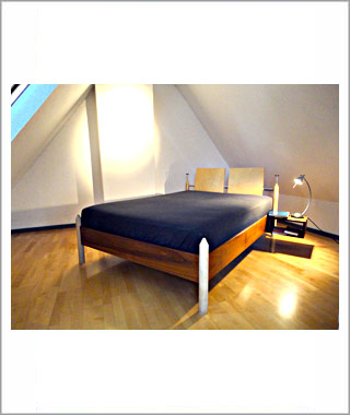 Mit verschiebbaren Kopfteilen und eingehängtem Ablagetisch