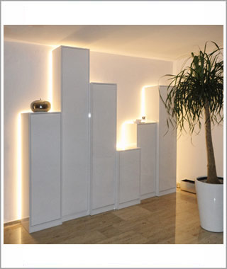 Hängendes Sideboard - eingepasst in eine Mauernische
